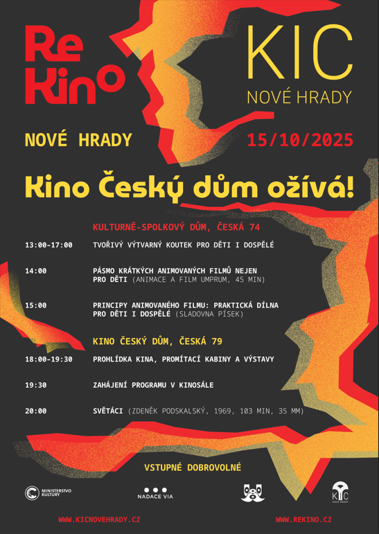 Další informace: KIC N. Hrady, tel.: 602 150 208, 386 362 195, www.kicnovehrady www.rekino.cz