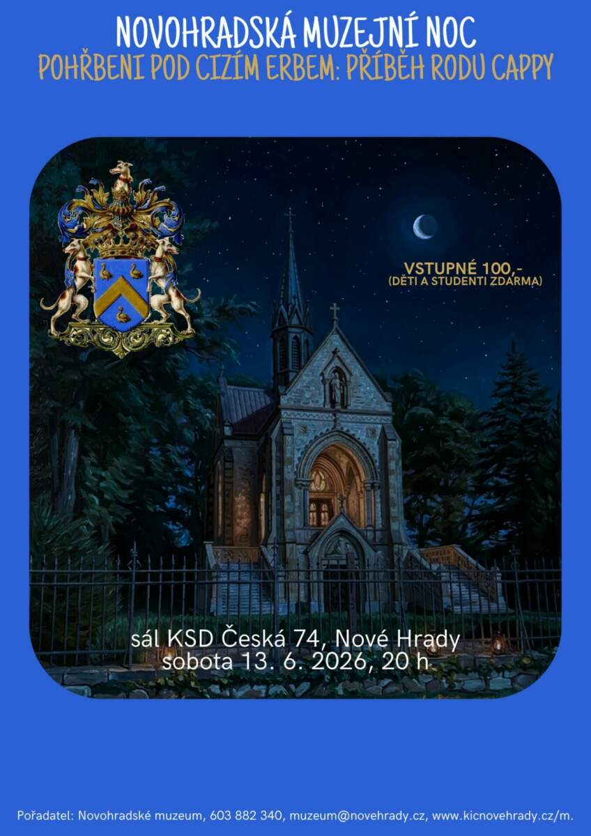 Muzejní noc odhalí historii dlouho opomíjeného šlechtického rodu Cappy a představí unikátní archivní prameny. Po skončení programu následuje prohlídka buquoyské hrobky pod rouškou tmy.