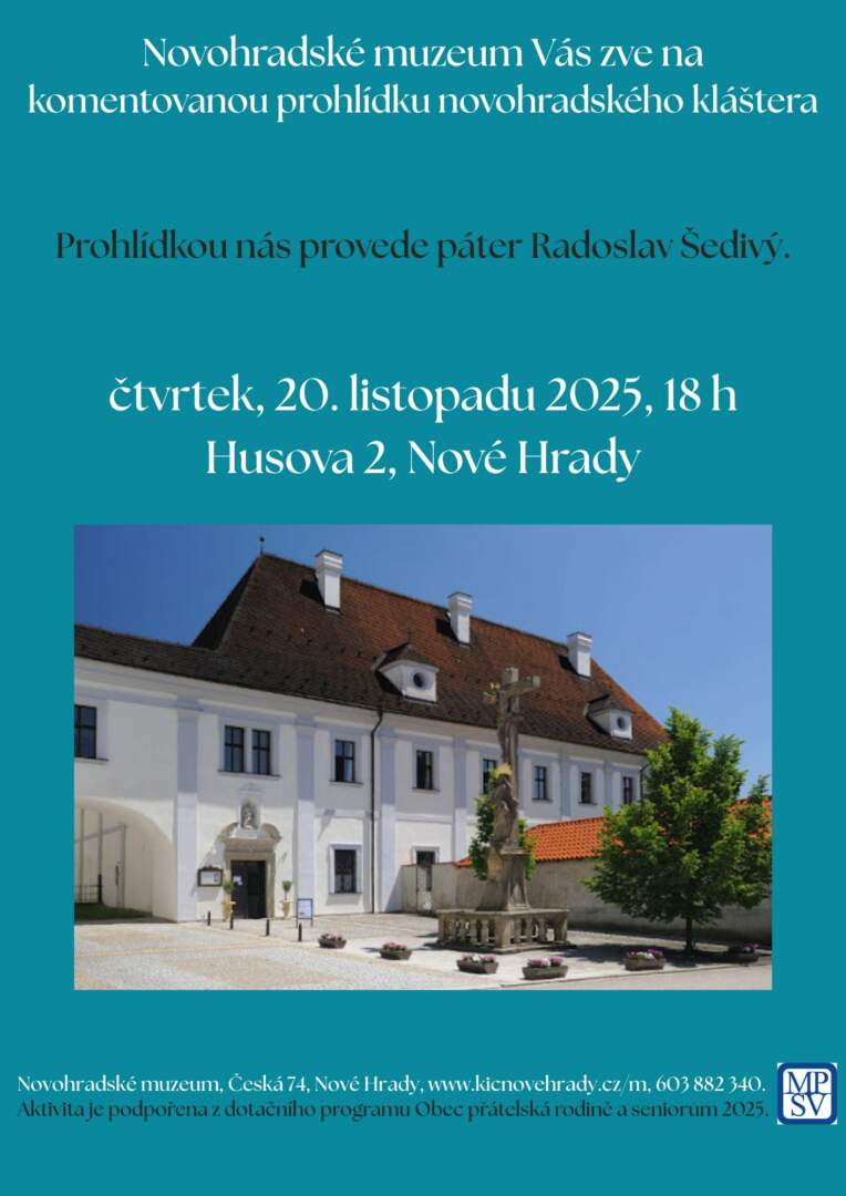 Zveme Vás na komentovanou prohlídku novohradského kláštera, kterou povede sám páter Radoslav Šedivý. Sraz je v 18 hodin před klášterem. Těšíme se na Vaši účast.