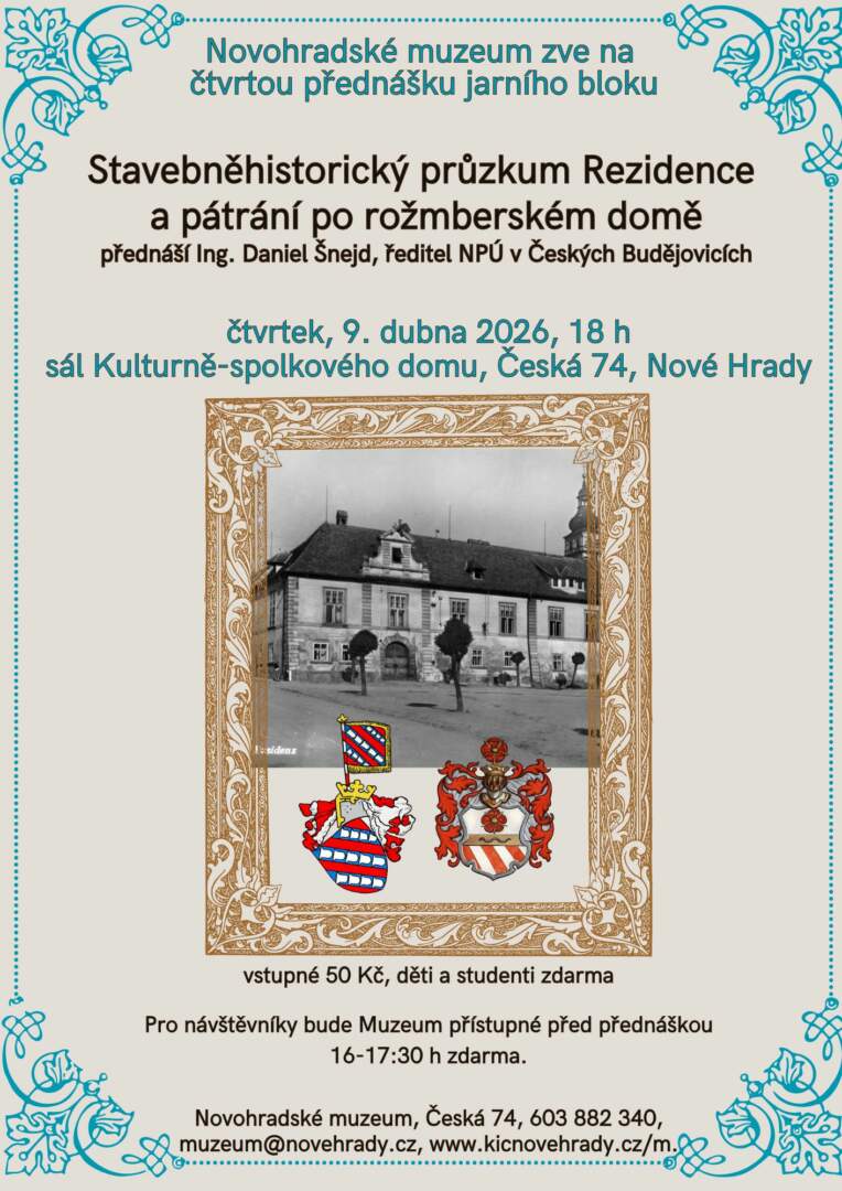 Muzejní přednáška: Stavebněhistorický průzkum Rezidence a patrání po rožmberském domě