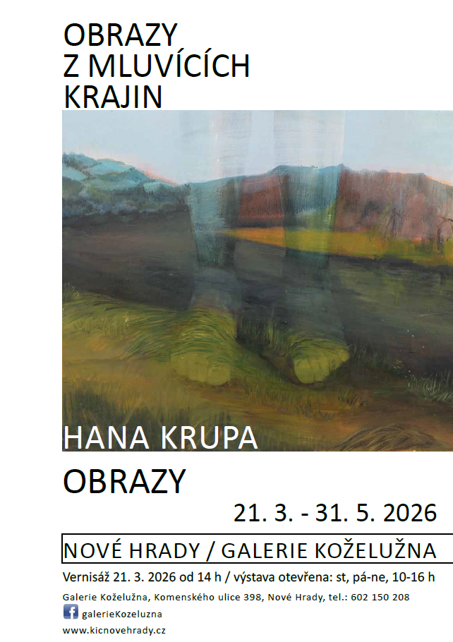 Vernisáž první letošní samostatné výstavy se uskuteční 21. března od 14 hodin a představí se nám brněnská malířka HANA KRUPA. Výstava s názvem OBRAZY IMAGINÁRNÍ KRAJINY bude k vidění do konce května a otevřeno bude: středy, pátky-neděle, 10-16 hod.