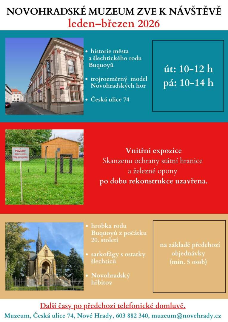 Aktuální otevírací doba Novohradského muzea a jeho expozic.