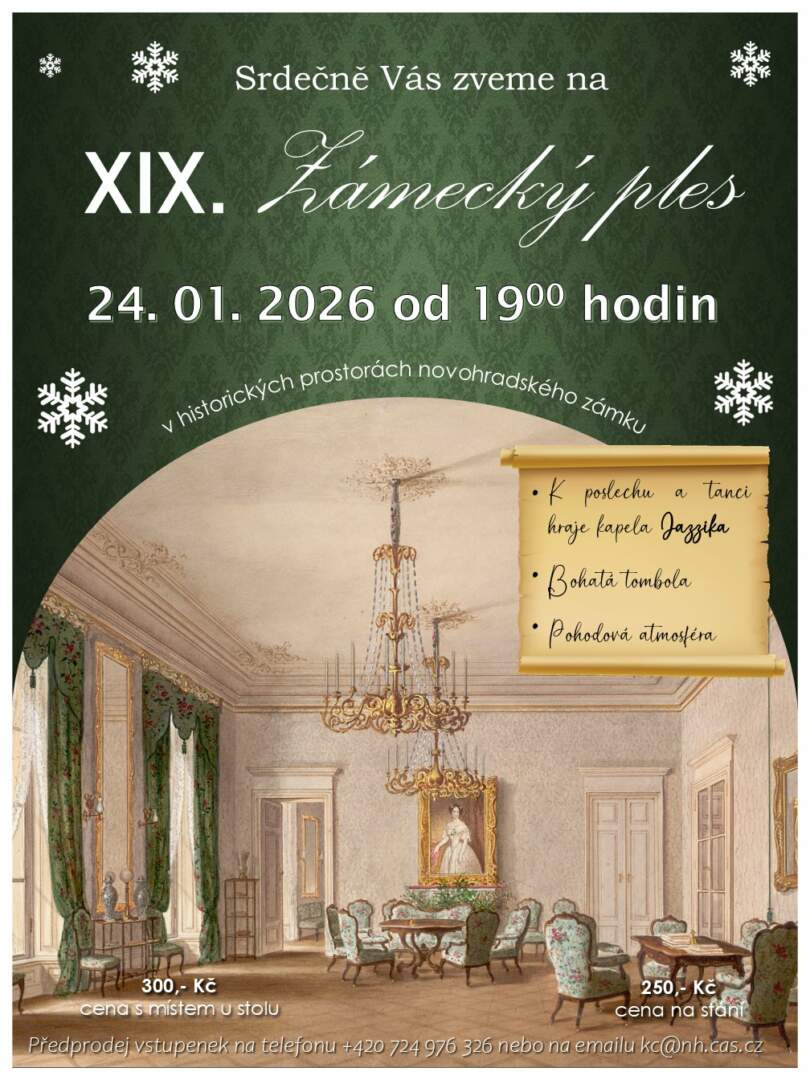 Zveme vás na XIX. Zámecký ples, který se uskuteční v reprezentativních historických sálech zámku v Nových Hradech.